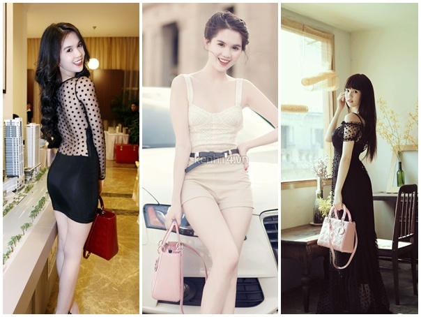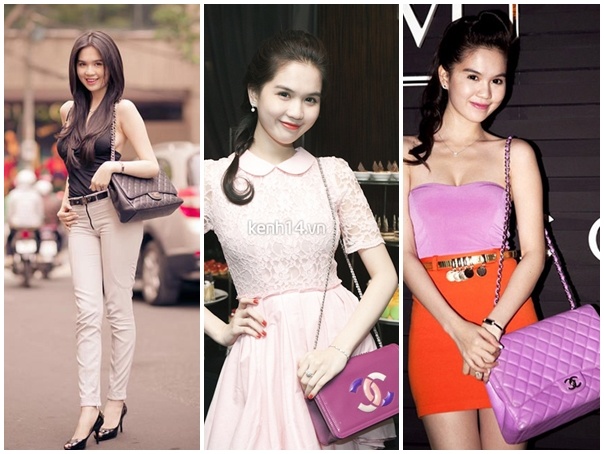 Túi xách phải đạt tiêu chí phối ton-sur-ton cùng trang phục của Ngọc Trinh.