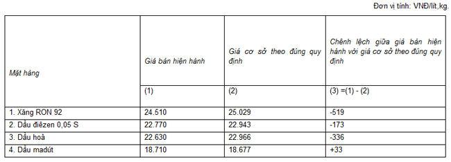| Theo tính toán của Bộ Tài chính, chỉ có giá bán hiện hành mặt hàng dầu mazut là cao hơn giá cơ sở. |