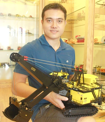 | Anh Dũng bên mô hình chiếc cần cẩu P&H có giá gần 3.000 USD. |
