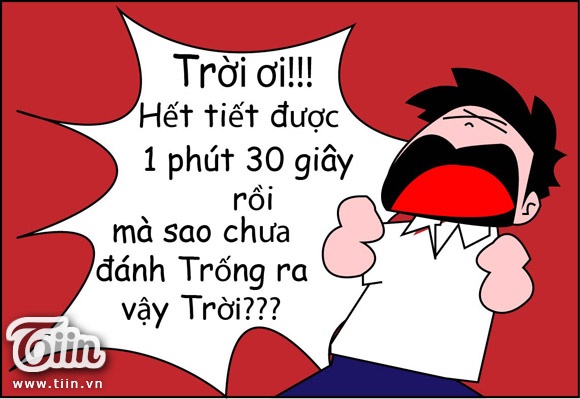 Bác bảo vệ hôm nay đi đâu mà đánh trống trễ vậy, hết tiết gần 2 phút rồi mà chưa có trống.