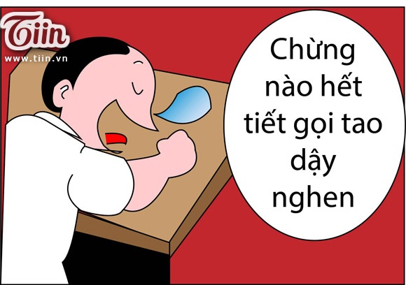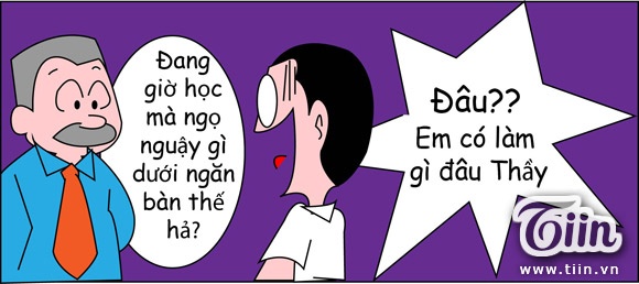 Đang ngồi đọc truyện lén lút dưới ngăn bàn, thầy giáo hỏi, giật mình kêu thật to: "Em có làm gì đâu thầy".