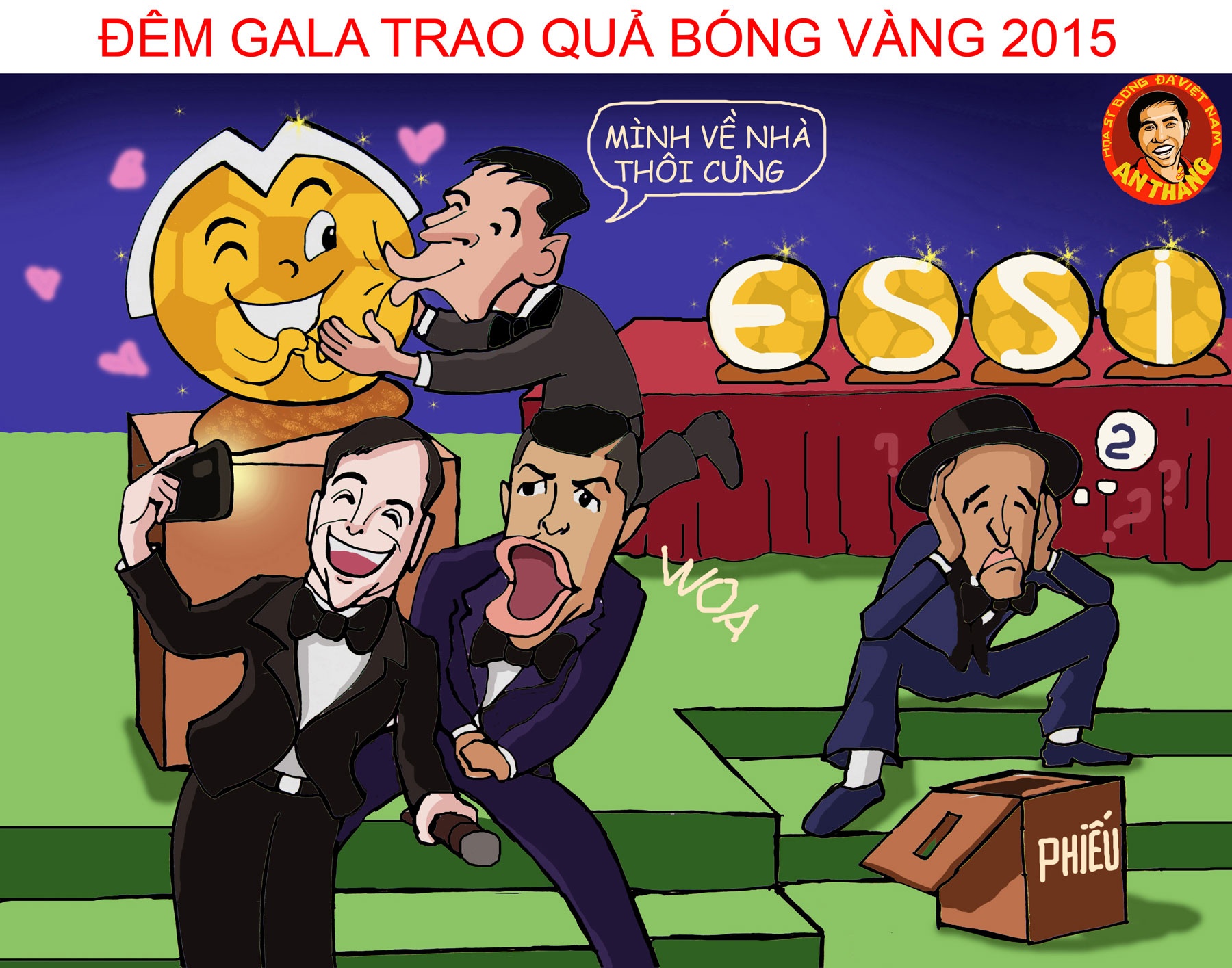 Tại đêm gala trao Quả bóng vàng 2015, Lionel Messi lần thứ 5 được vinh danh cầu thủ xuất sắc thế giới. Với Cris Ronaldo, anh biết chắc mình không có cửa nhận Quả bóng vàng nên chẳng bận tâm người nhận là ai. Sự thấp thỏm lo lắng như mọi năm nay được CR7 thay bằng gương mặt tươi cười, rạng rỡ tạo dáng cùng MC. Nhưng Neymar không giấu được sự thất vọng khi chỉ xếp thứ 3. |