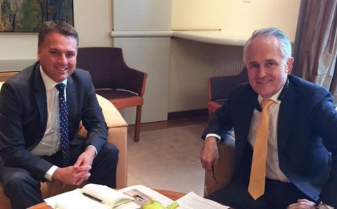Bộ trưởng Môi trường và Đô thị Australia Jamie Briggs (trái) và Thủ tướng Malcolm Turnbull (phải). Ảnh: SCMP |