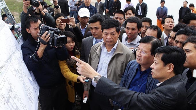 | Bộ trưởng Trịnh Đình Dũng thị sát vết nứt trụ T22. |