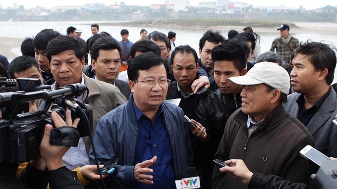 | Bộ trưởng Trịnh Đình Dũng yêu cầu các đơn vị liên quan khẩn trương khắc phục sự cố nứt cầu Vĩnh Tuy. |