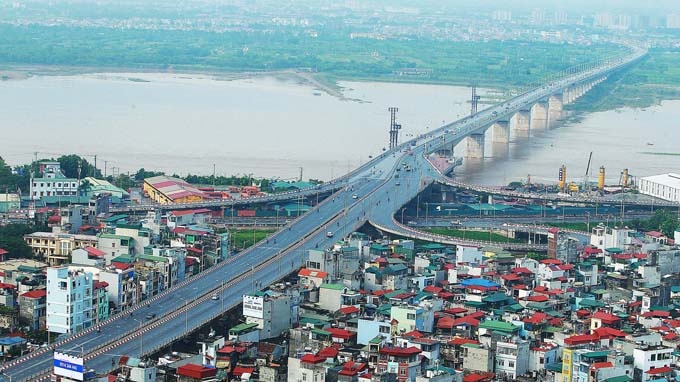 | Cầu Vĩnh Tuy được xây dựng năm 2010, bắc qua sông Hồng. |