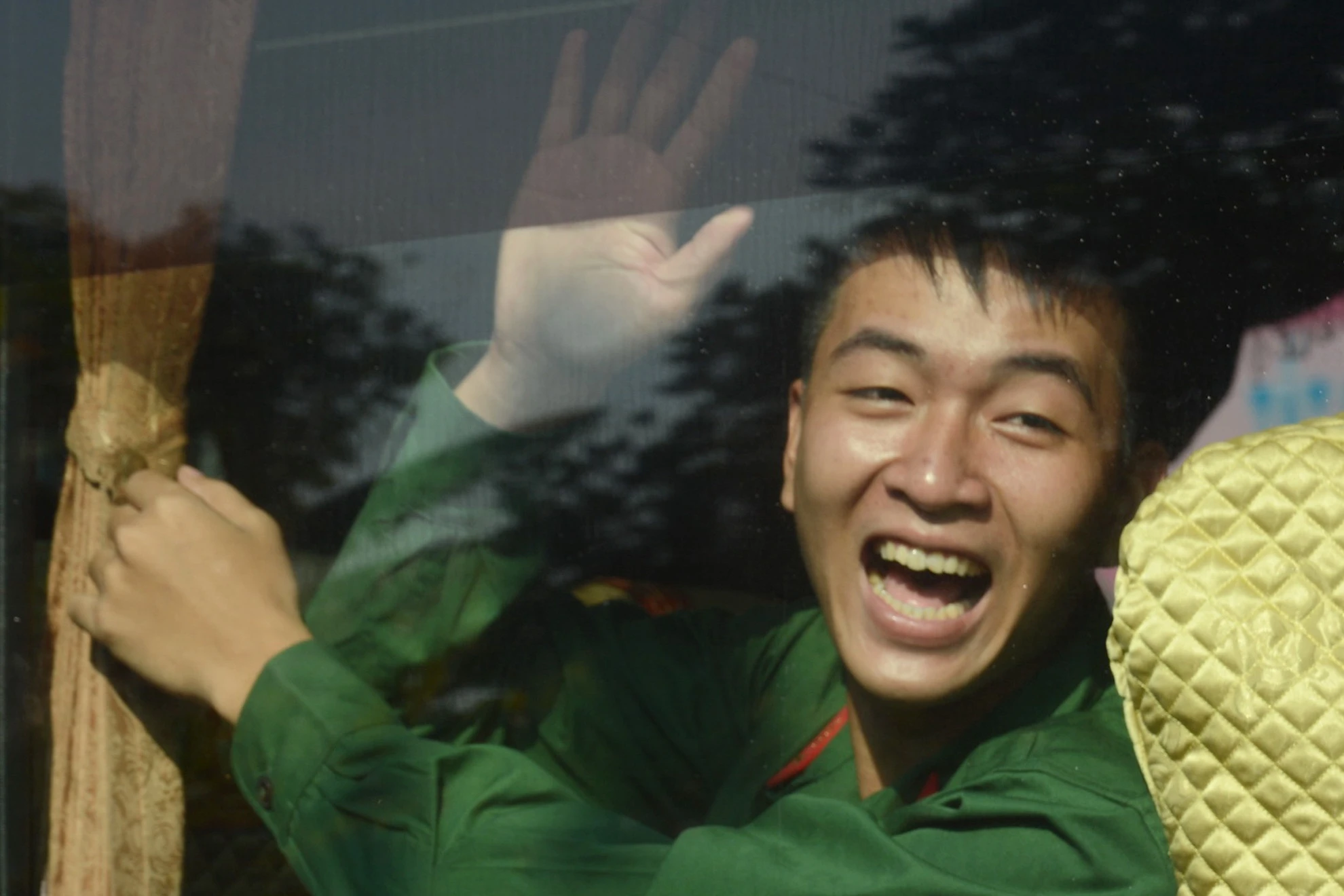 | Nụ cười tạm biệt người thân và bạn bè của tân binh Sài Gòn. |