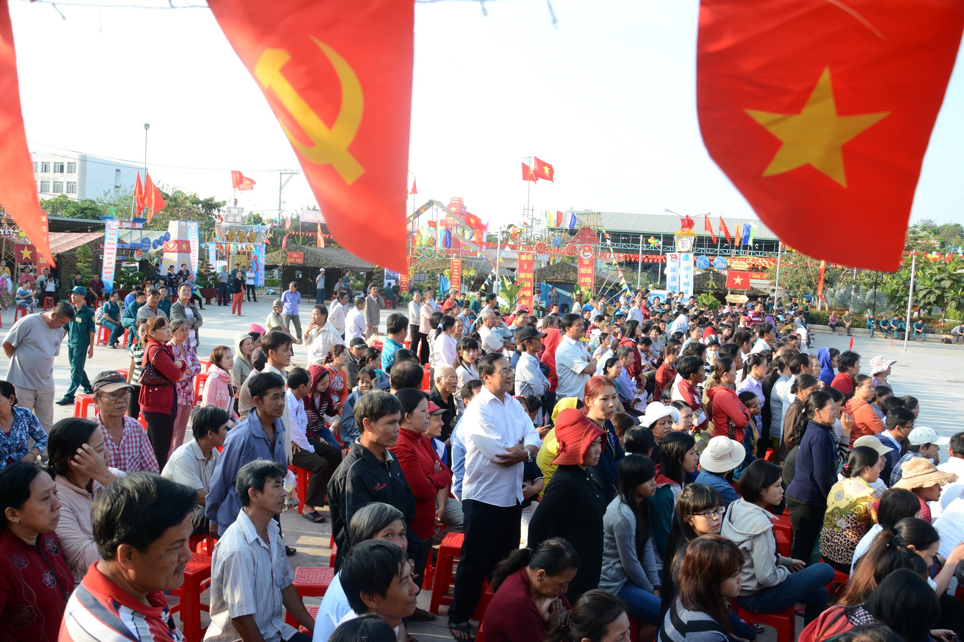 | Đại tướng chỉnh trang quân phục cho một tân binh. Theo trung tướng Trần Đơn - Ủy viên Ban Chấp hành Trung ương Đảng, Ủy viên Quân ủy Trung ương, Tư lệnh Quân khu 7 - chất lượng tuyển chọn và gọi công nhân nhập ngũ năm nay cao hơn những năm trước. Các thanh niên được khám tuyển kỹ về sức khỏe, được phổ biến những kiến thức về an ninh trật tự, quốc phòng và kỹ năng sống tập thể, để giúp họ hòa nhập nhanh với môi trường quân đội. |