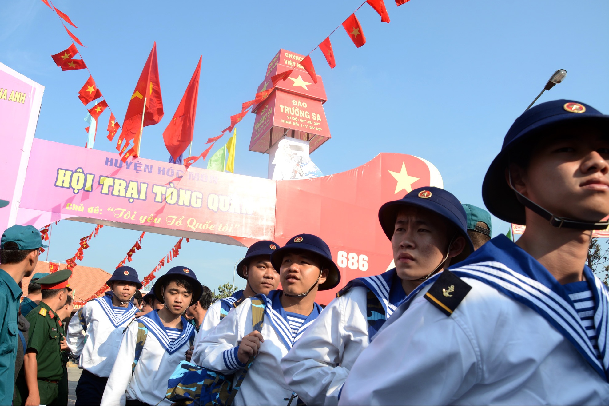 | Các chiến sĩ lên xe về Lữ đoàn 957 Hải quân. |