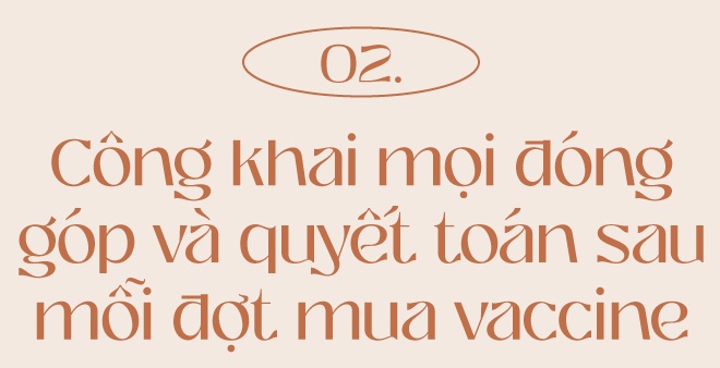 Từng cá nhân, doanh nghiệp, số tiền đóng góp nộp vào hàng ngày được công khai trên website Quỹ vaccine phòng, chống Covid và công khai thông tin trên các phương tiện thông tin đại chúng. Mỗi đợt chuyển tiền cho Bộ Y tế, chúng tôi đều công khai. Sau mỗi đợt mua, tiêm vaccine của Bộ Y tế, chúng tôi cũng đều công khai quyết toán.