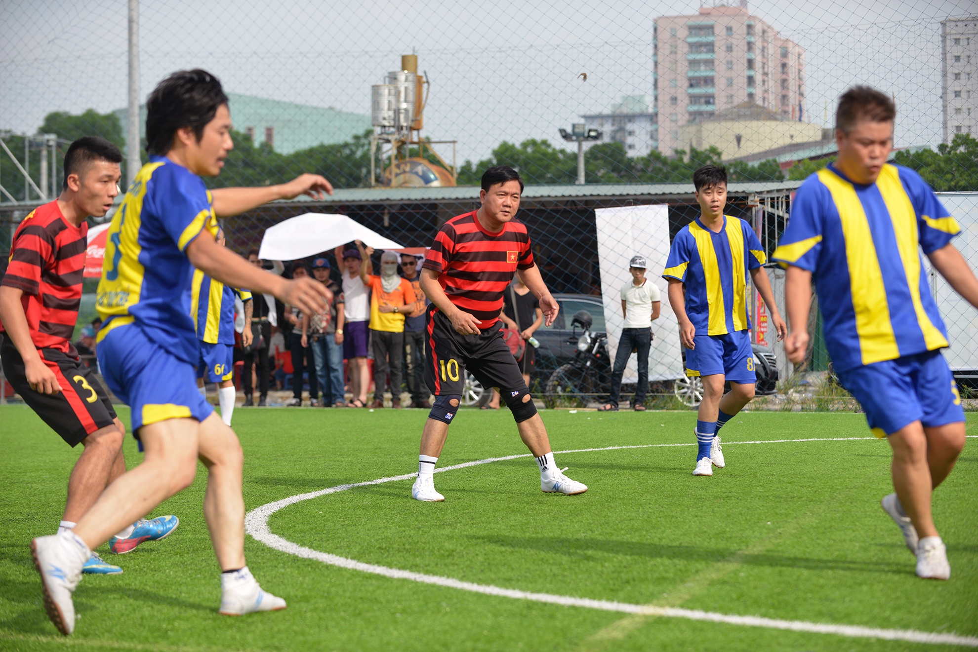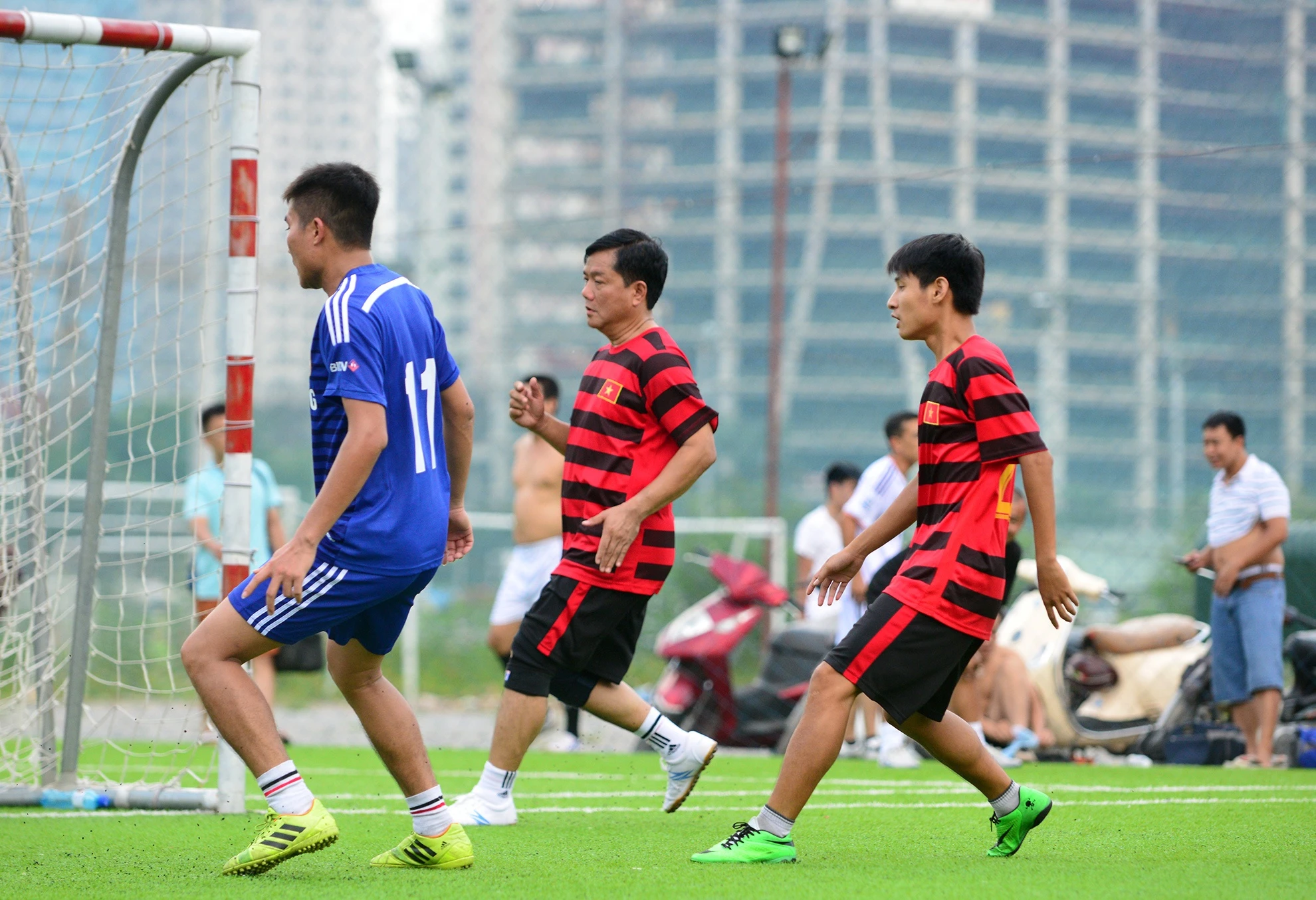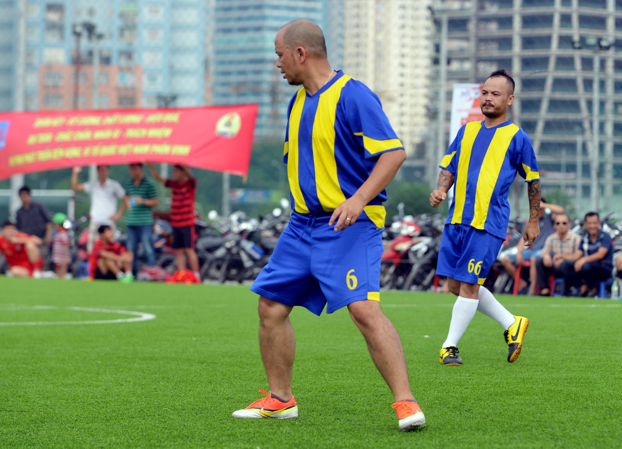 | Chiều 16/8, trận cầu đinh trong khuôn khổ giải bóng đá Tứ hùng giữa văn phòng đội Giao thông - Vận tải và đội văn nghệ sĩ đã diễn ra trên sân bóng Thành Đồng, đường Khuất Duy Tiến (Hà Nội). |