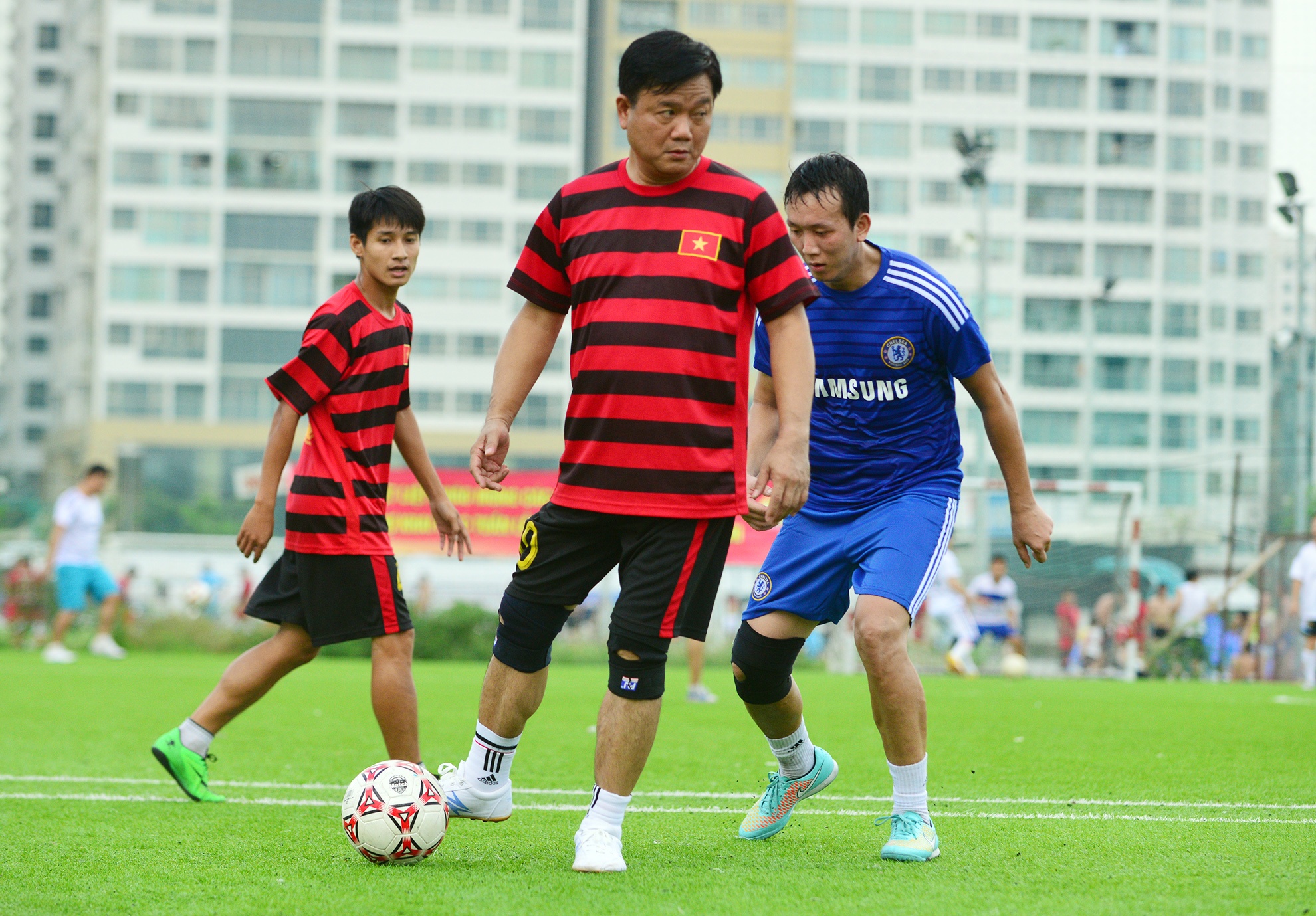 | Bộ trưởng Đinh La Thăng cũng tham dự với một suất đá chính, ông khoác áo số 10 và là tiền đạo của đội văn phòng Giao thông - Vận tải. |