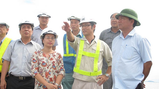 | Bộ trưởng Đinh La Thăng (bìa phải) kiểm tra tiến độ thi công đường cao tốc Hà Nội. |