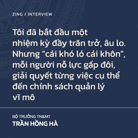 Nhân dịp đầu năm mới, Bộ trưởng Trần Hồng Hà dành cho Zing cuộc trao đổi về những biến cố mà ngành tài nguyên và môi trường (TN&MT) đối mặt trong gần trọn nhiệm kỳ 5 năm qua.