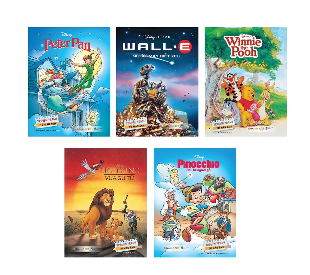 Cuối năm 2013, 16 cuốn truyện dài kèm minh họa được chuyển thể từ các bộ phim hoạt hình của Disney đã ra mắt độc giả nhí Việt Nam. Tiếp nối chuỗi sách đó, trong tháng 1 và 2/2016, độc giả nhỏ tuổi tiếp tục được thưởng thức 7 cuốn truyện dài kèm minh họa và đặc biệt là 25 cuốn truyện tranh khác được chuyển thể từ các bộ phim hoạt hình nổi tiếng của hãng Disney.