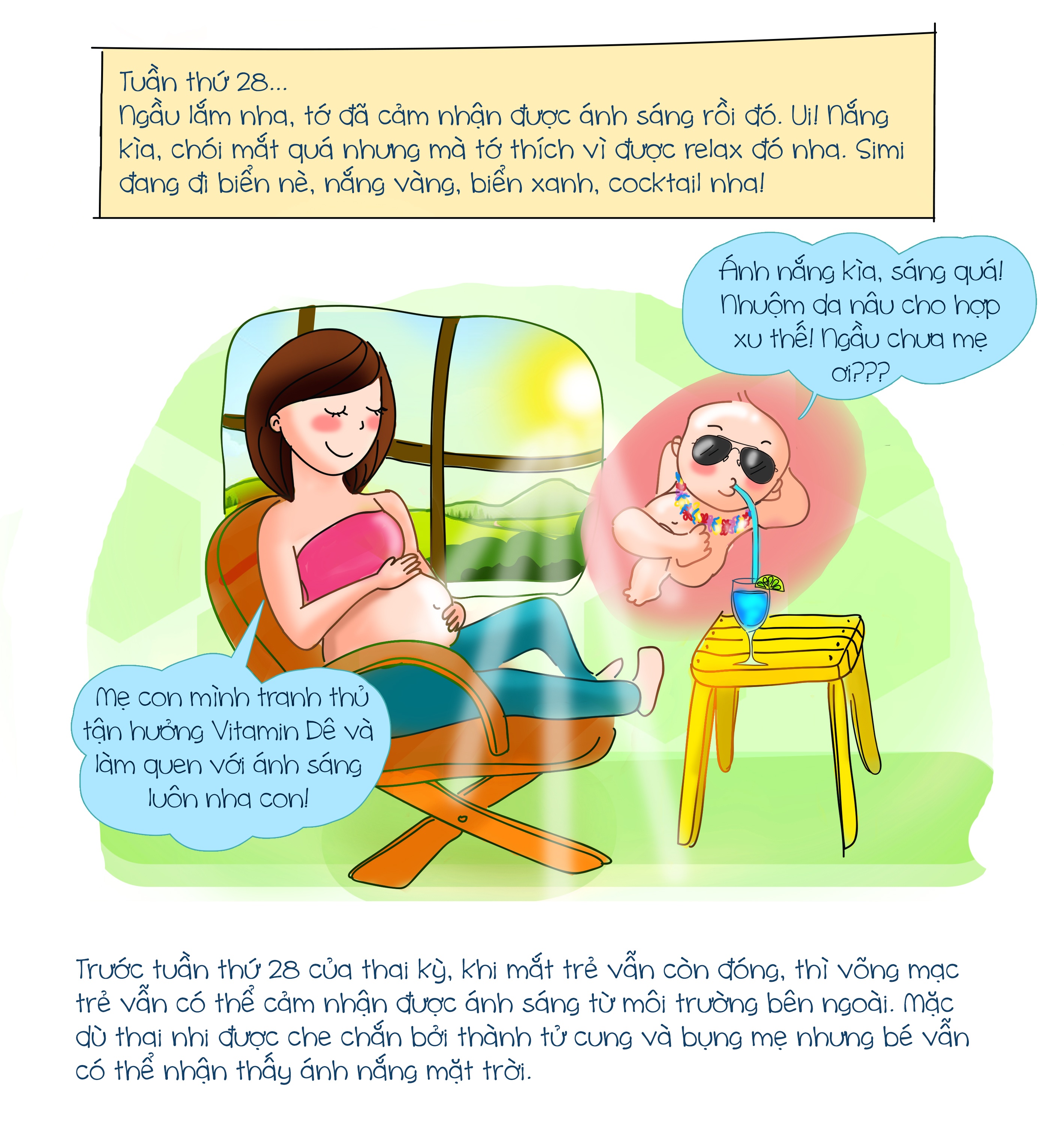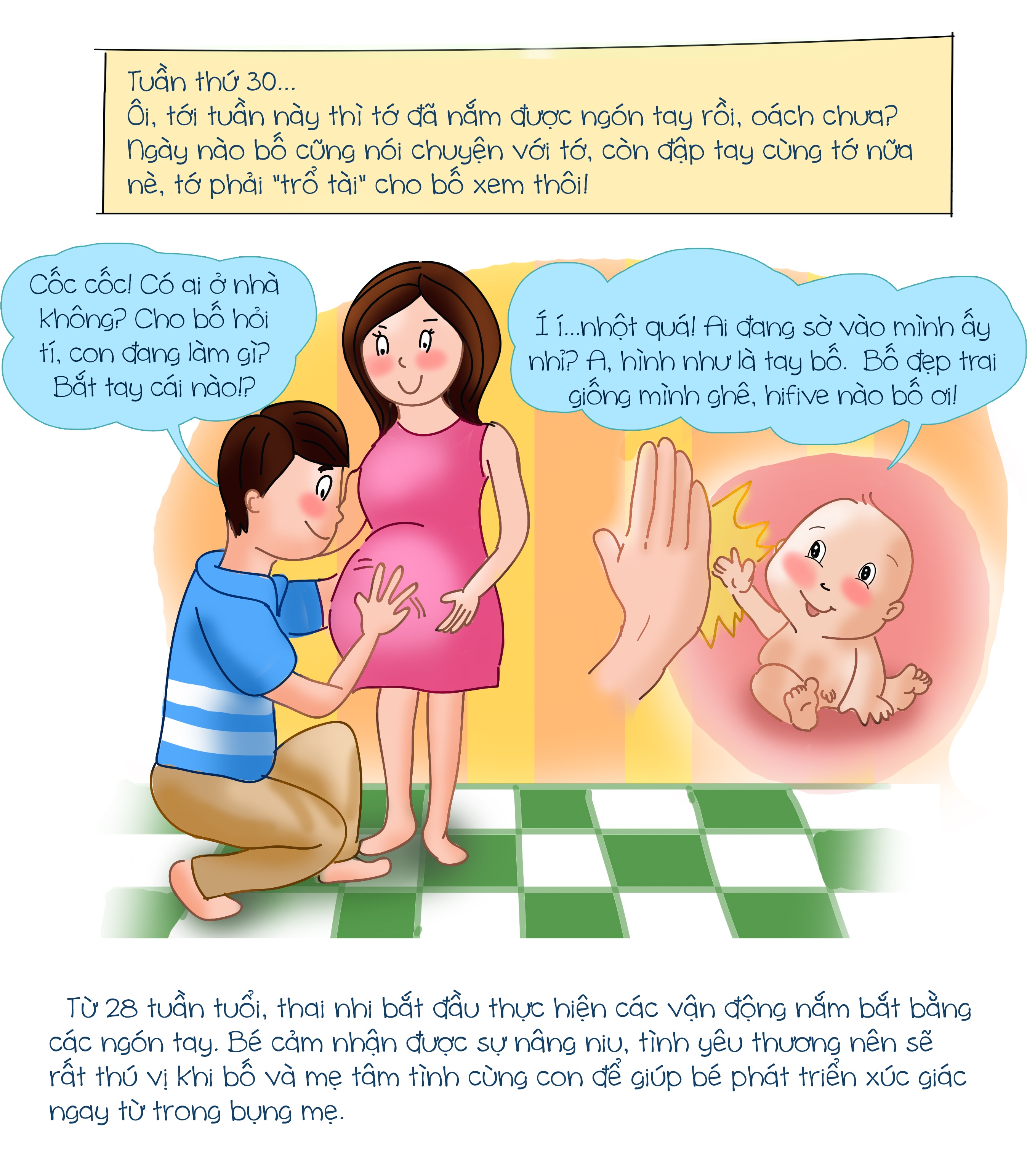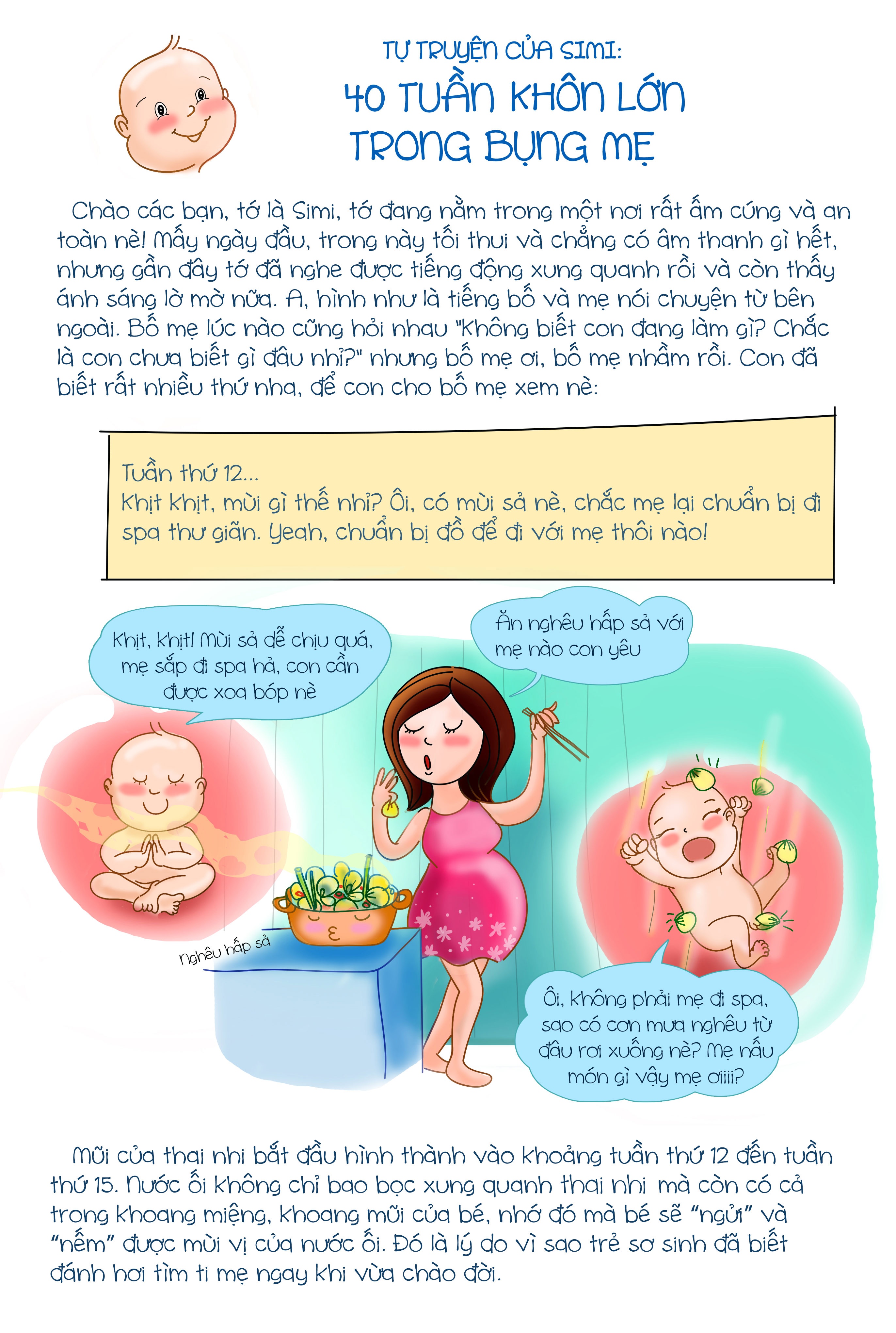 Ngay từ tuần thứ 8 của thai kỳ, bé đã biết học hỏi thế giới qua các giác quan qua xúc giác như thính giác, khứu giác, vị giác và thị giác.