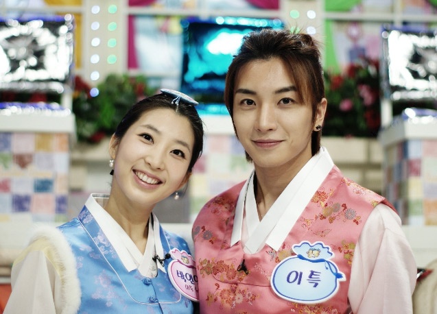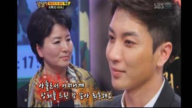 Lee Teuk và mẹ trong một chương trình truyền hình.