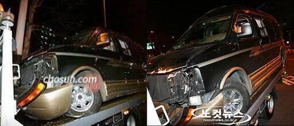 Chiếc xe được cho là của cha Lee Teuk sau tai nạn.