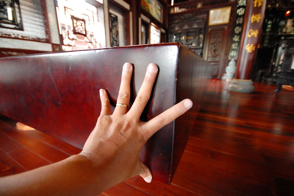 Rất nhiều du khách đã đến tận nơi để chiêm ngưỡng bộ ván ngựa bằng gỗ gõ bông lau, được trưng bày trong không gian nhà cổ của khu du lịch này.