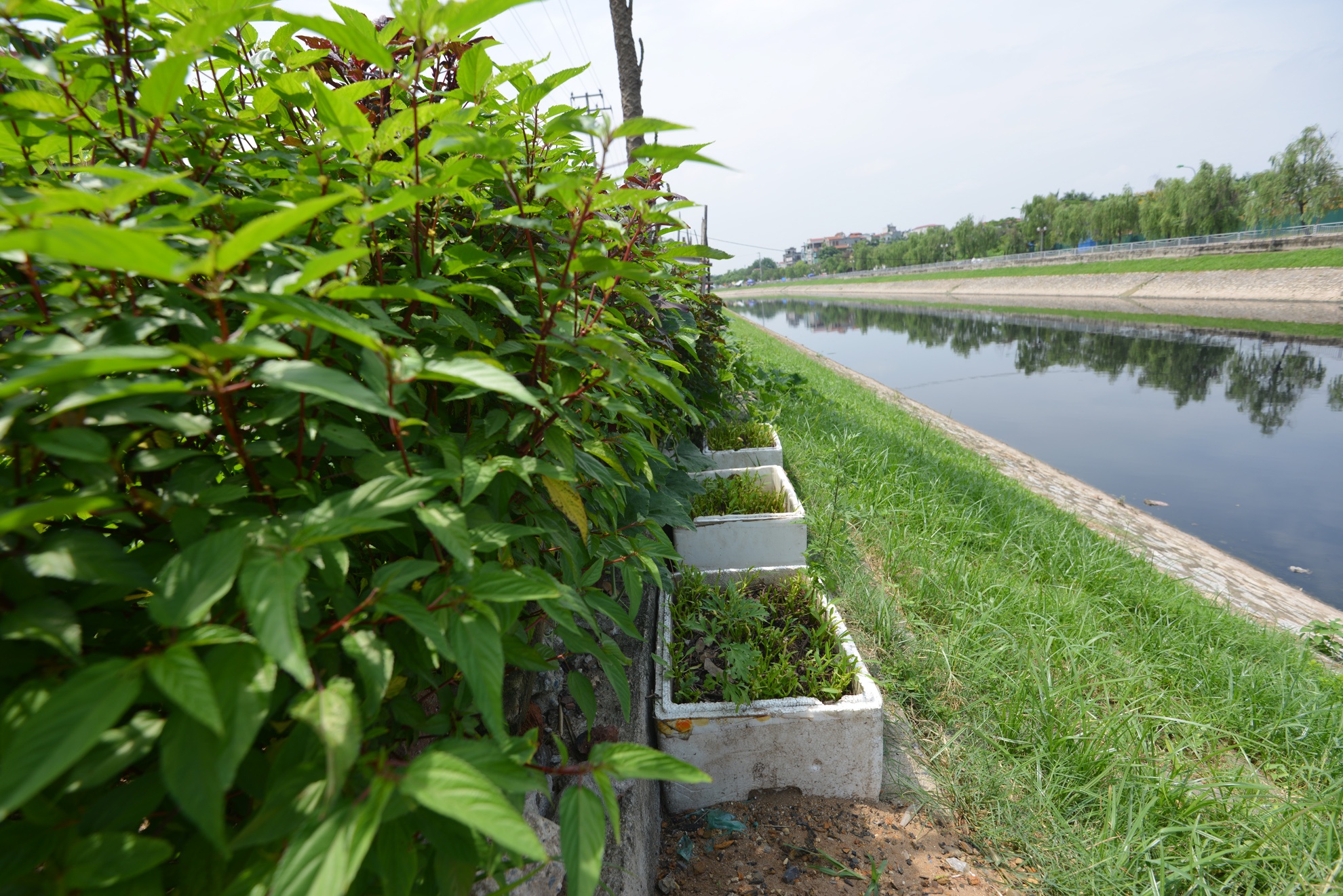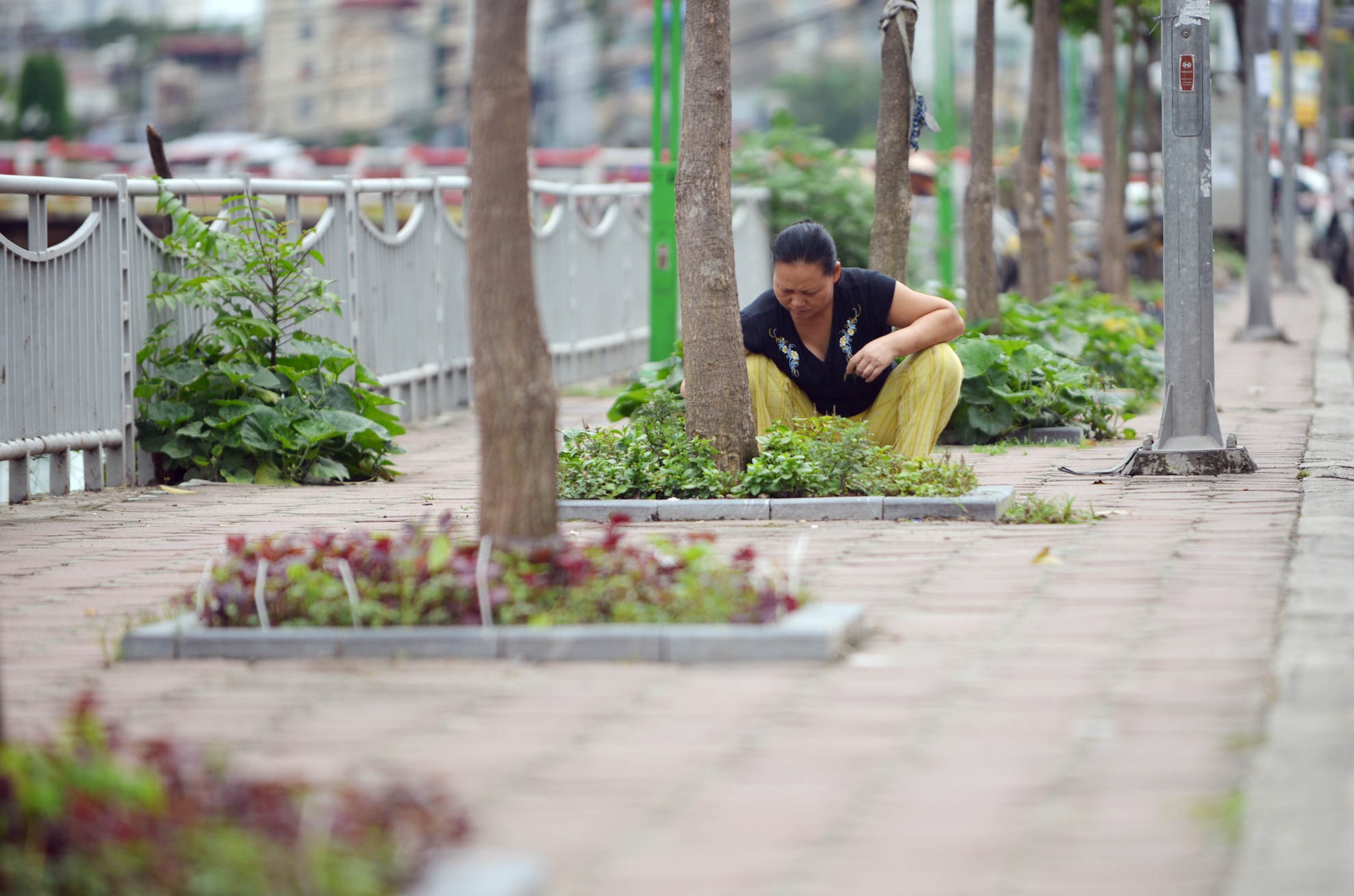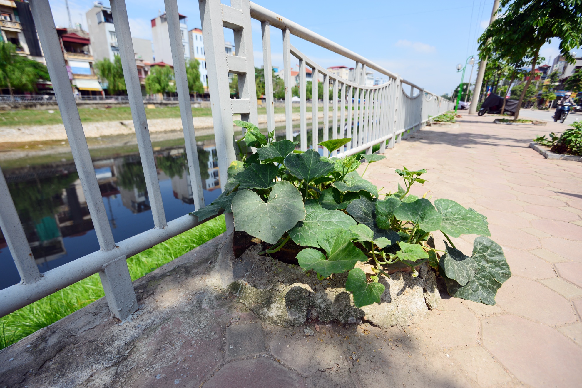 Các bồn hoa, bồn trồng cây cũng được người dân vun đất trồng đủ các loại rau như dền, đay, bí ngô, mồng tơi - những loại đều khá dễ trồng và phát triển tốt vào mùa hè, nhất là sau những hôm mưa. Không tốn kém bằng trồng ở sân thượng hay trước nhà, người trồng rau ở ven sông, bồn cây chỉ tốn nhiều công chăm sóc. Công việc hàng ngày của chủ nhân các vườn rau này là nhổ cỏ, tưới nước... Tuy nhiên, với những loại trồng trong thùng xốp, chi phí bỏ ra khá đắt đỏ, thậm chí cao hơn rau mua ngoài chợ, nhưng người trồng vẫn chấp nhận.