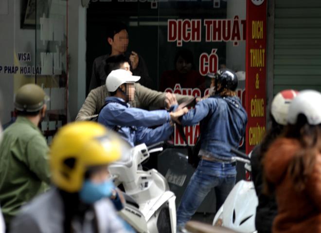 | Bị ép xe, khi đến, trước cửa ngôi nhà số 130 Bà Triệu, tên cướp chống trả và bỏ lại xe máy cùng túi xách. Lực lượng công an phường Nguyễn Du có mặt kịp thời để xử lý vụ việc. |