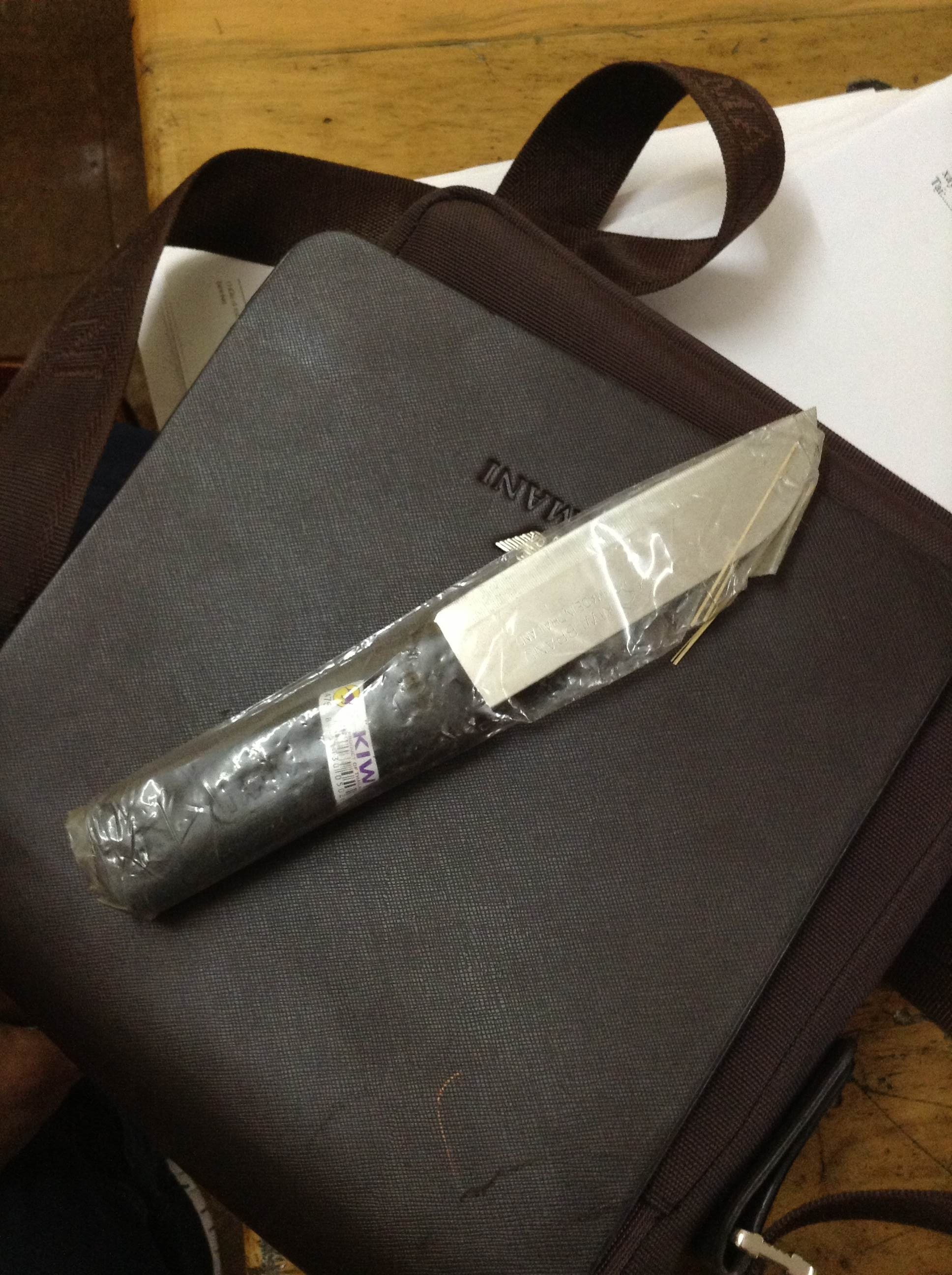 | Cơ quan chức năng thu được một túi xách của tên cướp bên trong có giấy phép lái xe, dao thái lan còn mới. Bên trong túi xách của nạn nhân có 600.000 đồng, một điện thoại Iphone 5 và một số giấy tờ quan trọng. |