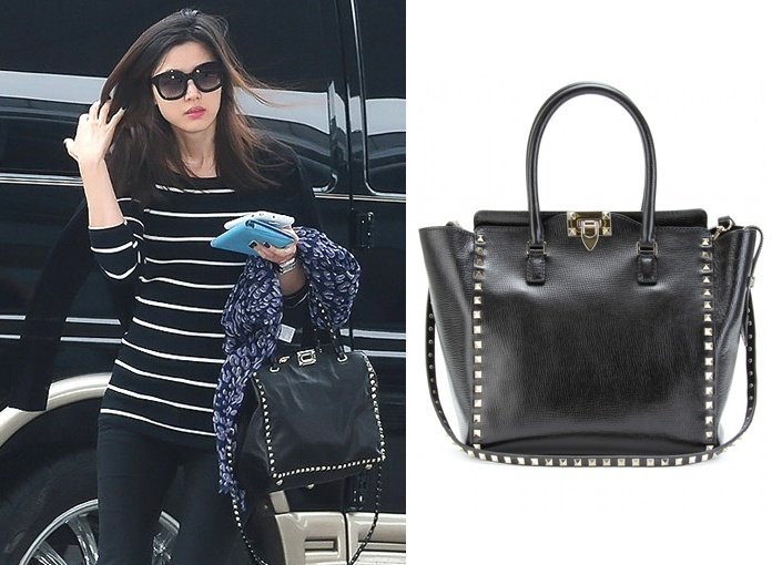 | Jun Ji Hyun yêu thích mẫu túi đính kim loại cá tính của Valentino giá 2.495 USD. |