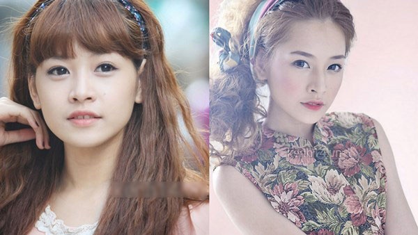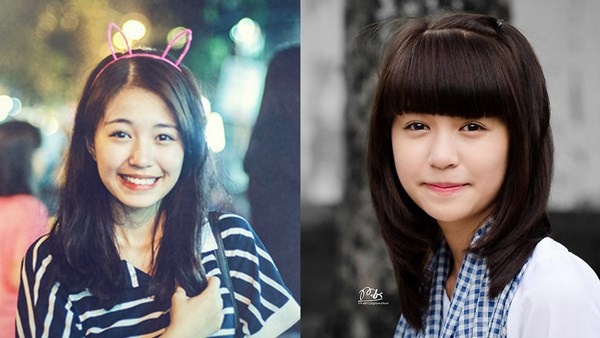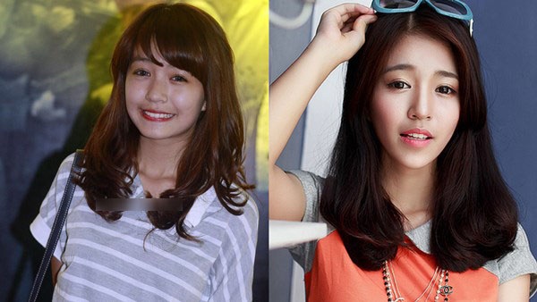 | Quỳnh Anh (trái) vừa mới xuất hiện trong chương trình ngoại khóa của trường, chiếc cằm của cô vẫn không có nhiều khác biệt so với lúc mới nổi nhưng trong tấm ảnh bên phải, Quỳnh Anh như trở thành một người khác biệt khi sở hữu chiếc cằm dài và nhọn đến mức khó tin. Nếu không phải phẫu thuật thẩm mỹ thì đây quả là sản phẩm của photoshop quá đà. |