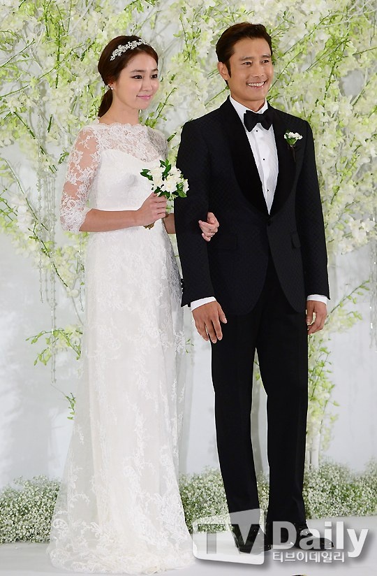 | Lee Buyng Hun và Lee Min Jung rạng rỡ trong ngày cưới. |