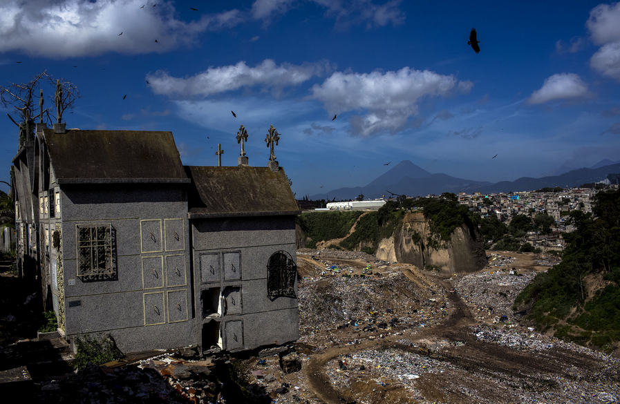 Công nhân nghĩa trang chuyển một quan tài của trẻ sơ sinh ra khỏi mộ. Theo New York Times, họ đưa khoảng 4.000 thi hài của trẻ sơ sinh tới một ngôi mộ tập thể gần bãi rác lớn nhất của thủ đô Guatemala. Ngoài lý do nhiều gia đình nghèo không đủ tiền trả lệ phí trùng tu mộ, nhu cầu lớn về không gian chôn cất người chết do mức độ bạo lực đang tăng tại quốc gia Trung Mỹ là nguyên nhân căn bản khác dẫn tới việc khai quật mộ trẻ em.