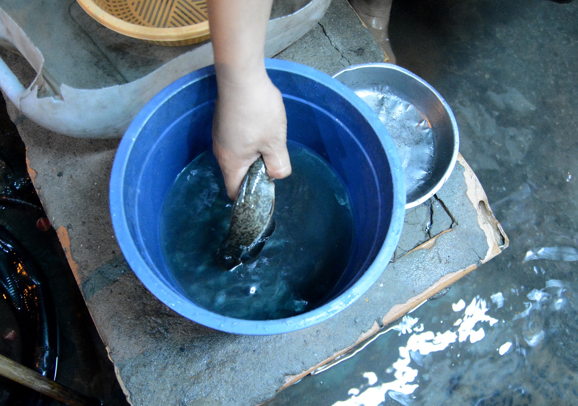 | Một số con khác bơi lên chỗ cạn nên anh đã bắt dễ dàng. |