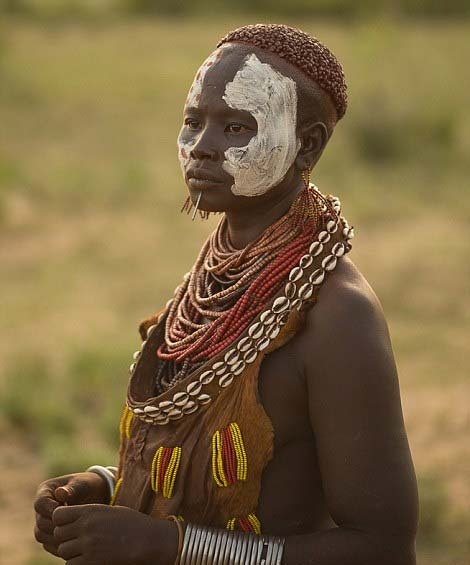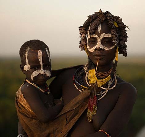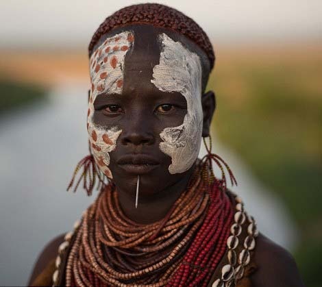 | Giống như nhiều bộ tộc khác sống ở bờ sông Omo, người Karo dùng vôi vẽ lên mặt để ăn mừng các lễ hội. Họ trộn vôi với bột đá màu vàng và quặng sắt để tạo màu. Nhiếp ảnh gia Vicente Pamparo đã tới sông Omo hồi tháng 11 năm ngoái để tìm hiểu về cuộc sống của bộ tộc Karo và ghi lại chân dung con người Karo. |