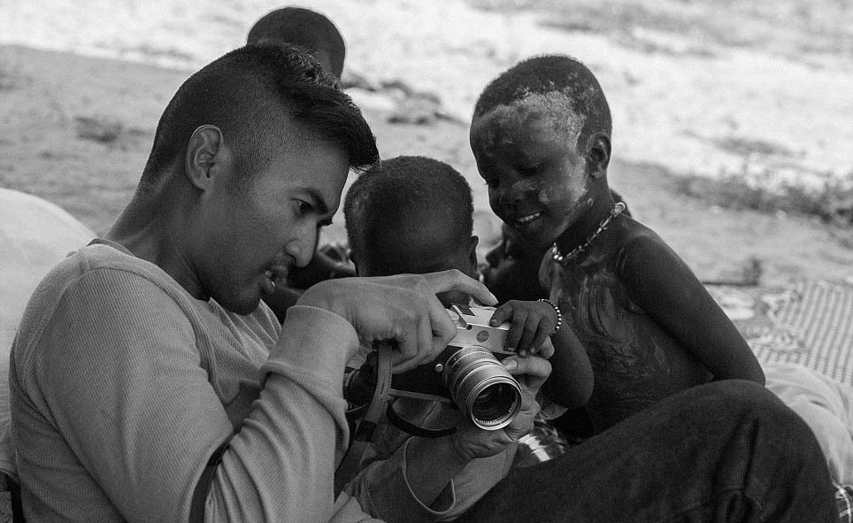| Nhiếp ảnh gia Vicente Pamparo cho bọn trẻ xem những hình ảnh mà anh ghi lại được. |