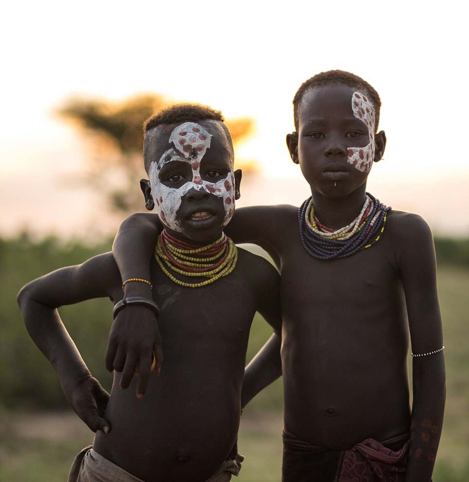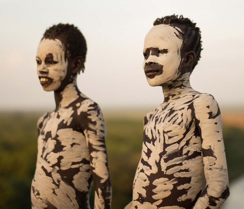 | Những đứa trẻ mới lớn của bộ tộc cũng bôi vôi lên mặt. |