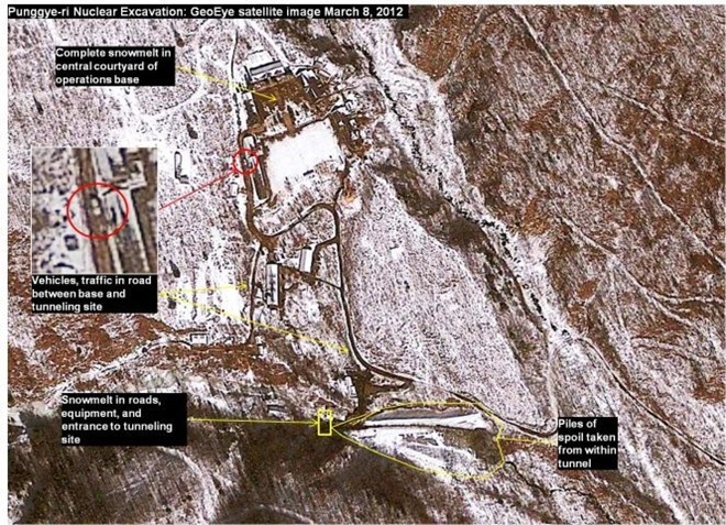 Ảnh vệ tinh chụp bãi thử hạt nhân Punggye-ri của Triều Tiên. Ảnh: 38 North |