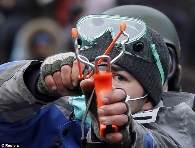 Súng cao su cũng xuất hiện trong cuộc biểu tình tại Kiev. Ảnh: Reuters