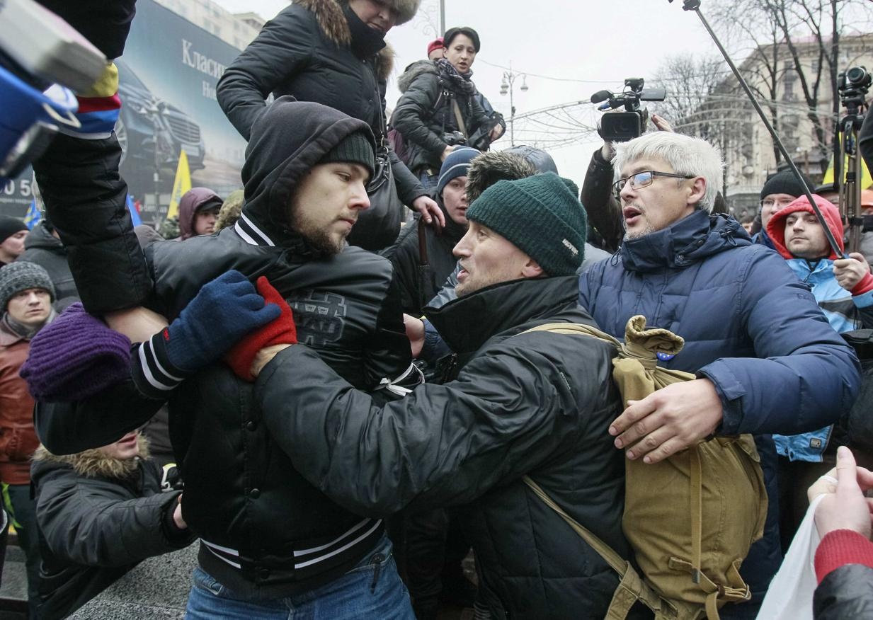 Người chống và ủng hộ chính phủ xô xát tại quảng trường Độc lập. Ảnh: Reuters