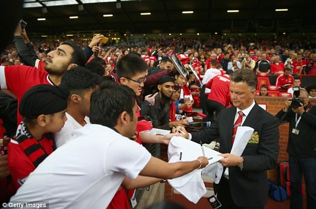 | Van Gaal mỏi tay ký tặng người hâm mộ. |