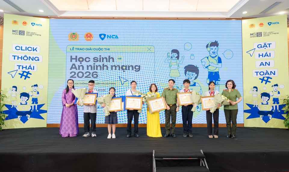 Ngày 24/4, Lễ trao giải Cuộc thi "Học sinh với An ninh mạng 2026" diễn ra tại Hà Nội. Đây là kỳ thi thu hút số lượng thí sinh kỷ lục, do Hiệp hội An ninh mạng quốc gia (NCA) chủ trì, được Bộ Công an và Bộ Giáo dục & Đào tạo bảo trợ.