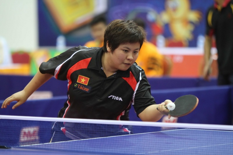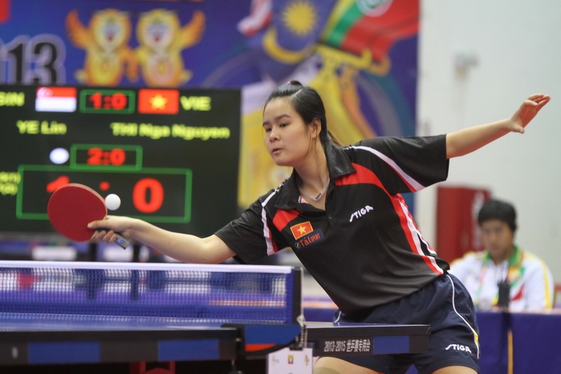 | Tay vợt Nguyễn Thị Nga. Cũng giống như đội tuyển, bóng bàn nữ cũng giành được tấm HCĐ sau khi thất bại 0-3 trước Singapore ở 2 trận đơn và 1 trận đôi. |