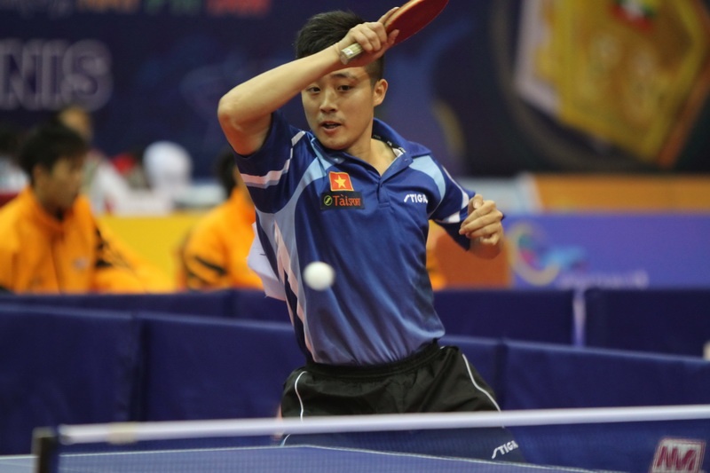 HLV đội tuyển bóng bàn nam, Lê Đức Thọ cho biết: "Đội bóng bàn nam có 4 VĐV là Duy Hoàng, Văn Ngọc, Văn Nam, Tiến Đạt thì cả 4 em đều còn non kinh nghiệm thi đấu quốc tế. Thế nên, chúng tôi chỉ biết cố gắng, giành HCĐ đã là thành công". Trong ảnh: tay vợt Nguyễn Văn Ngọc.