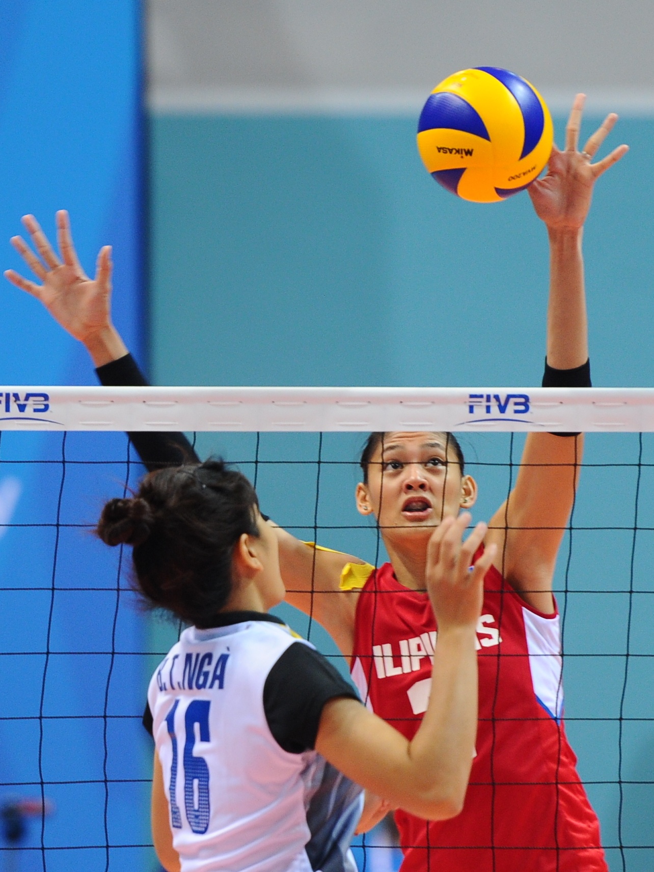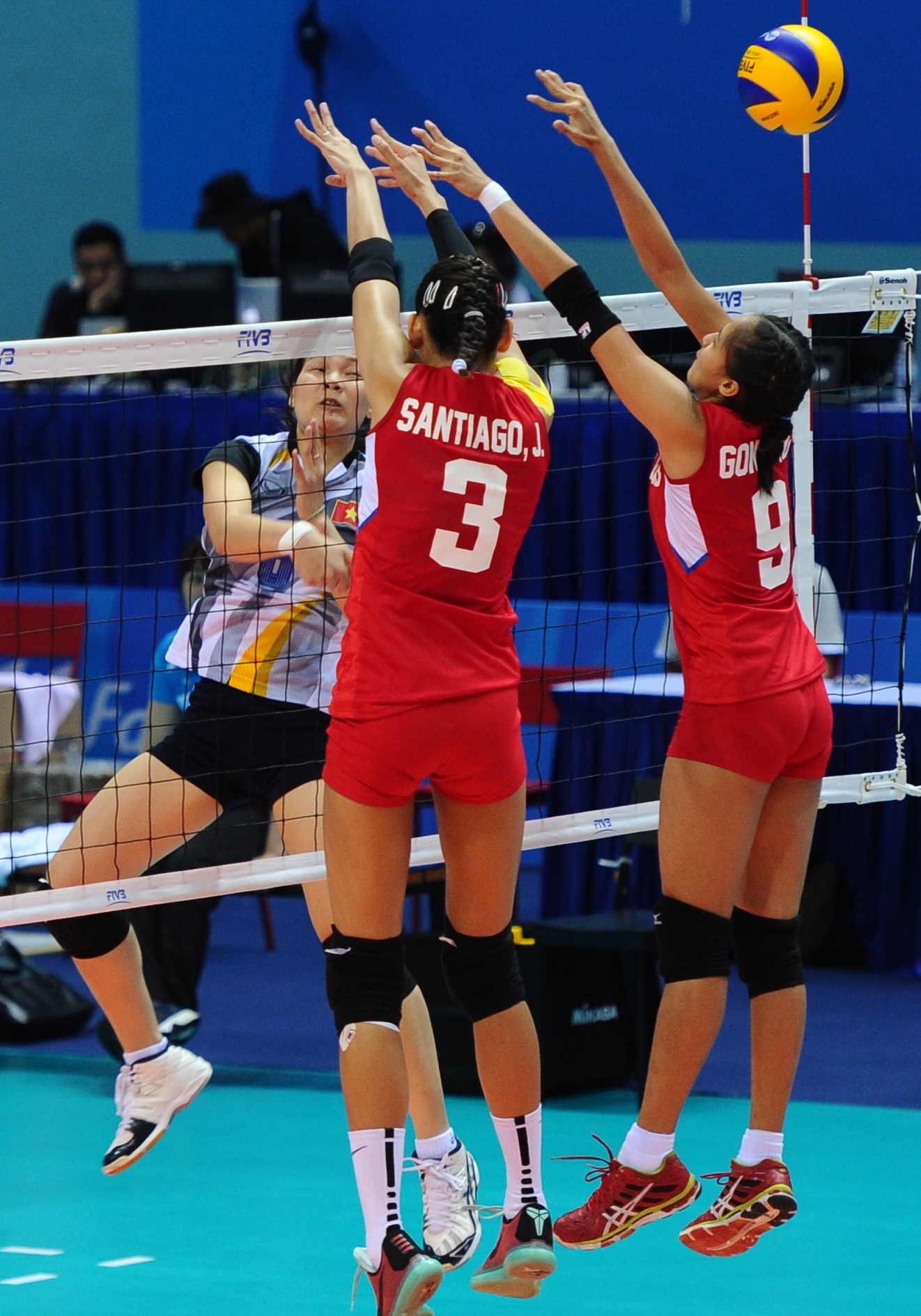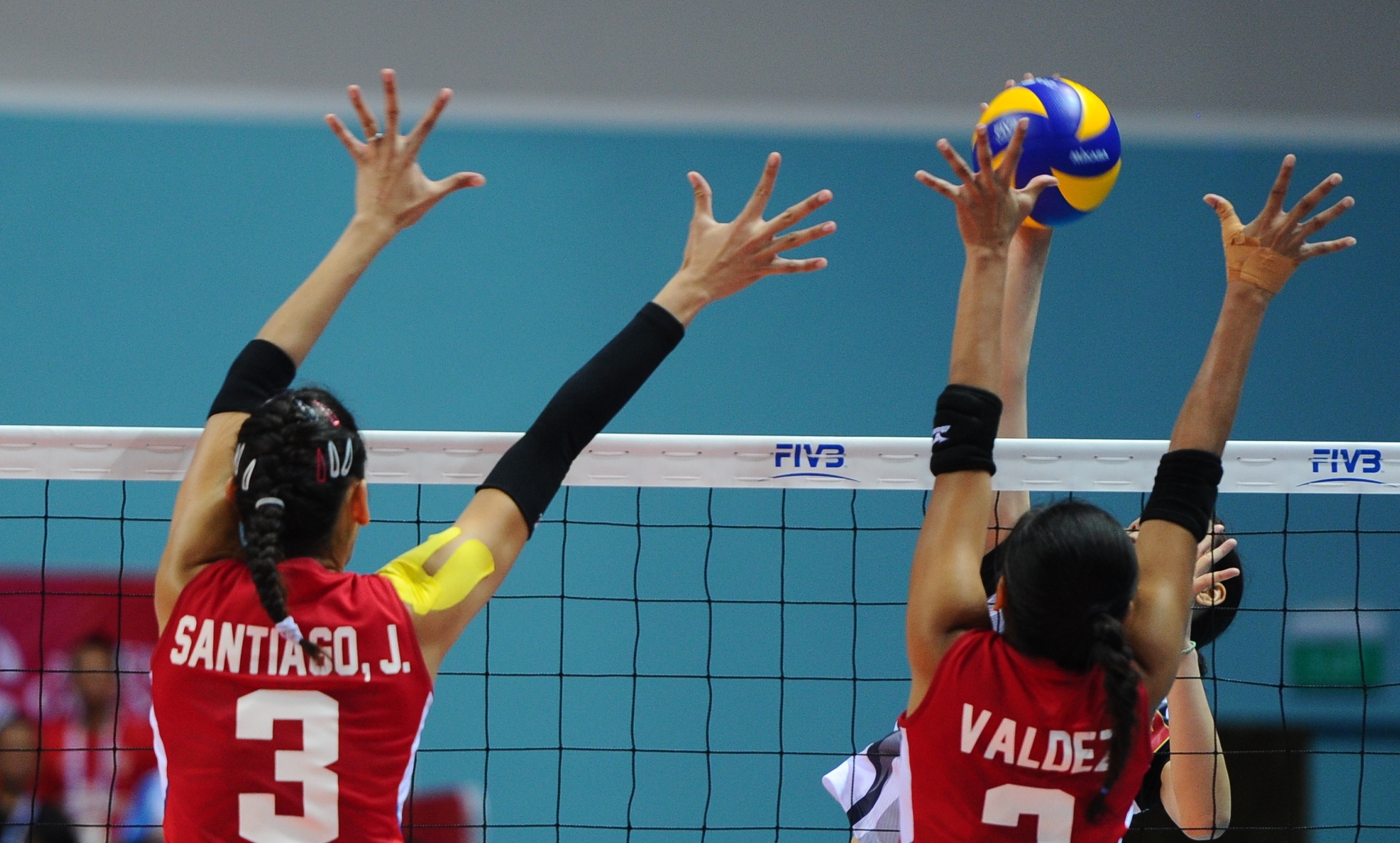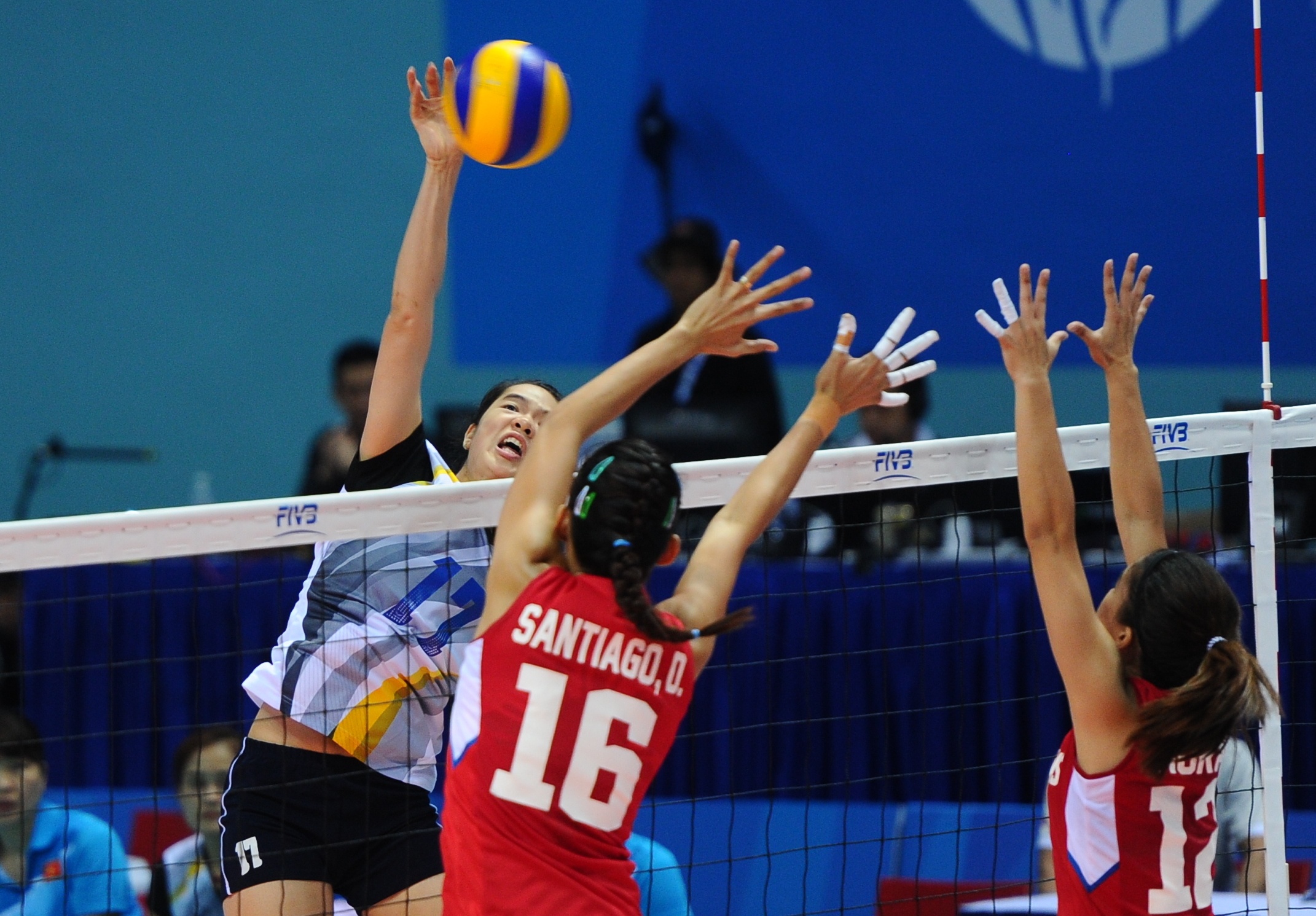 | Với chiều cao vượt trội 1,95 m, cô em nhà Santiago luôn giành phần thắng trong các pha tranh chấp bóng trên lưới với tuyển nữ Việt Nam. |