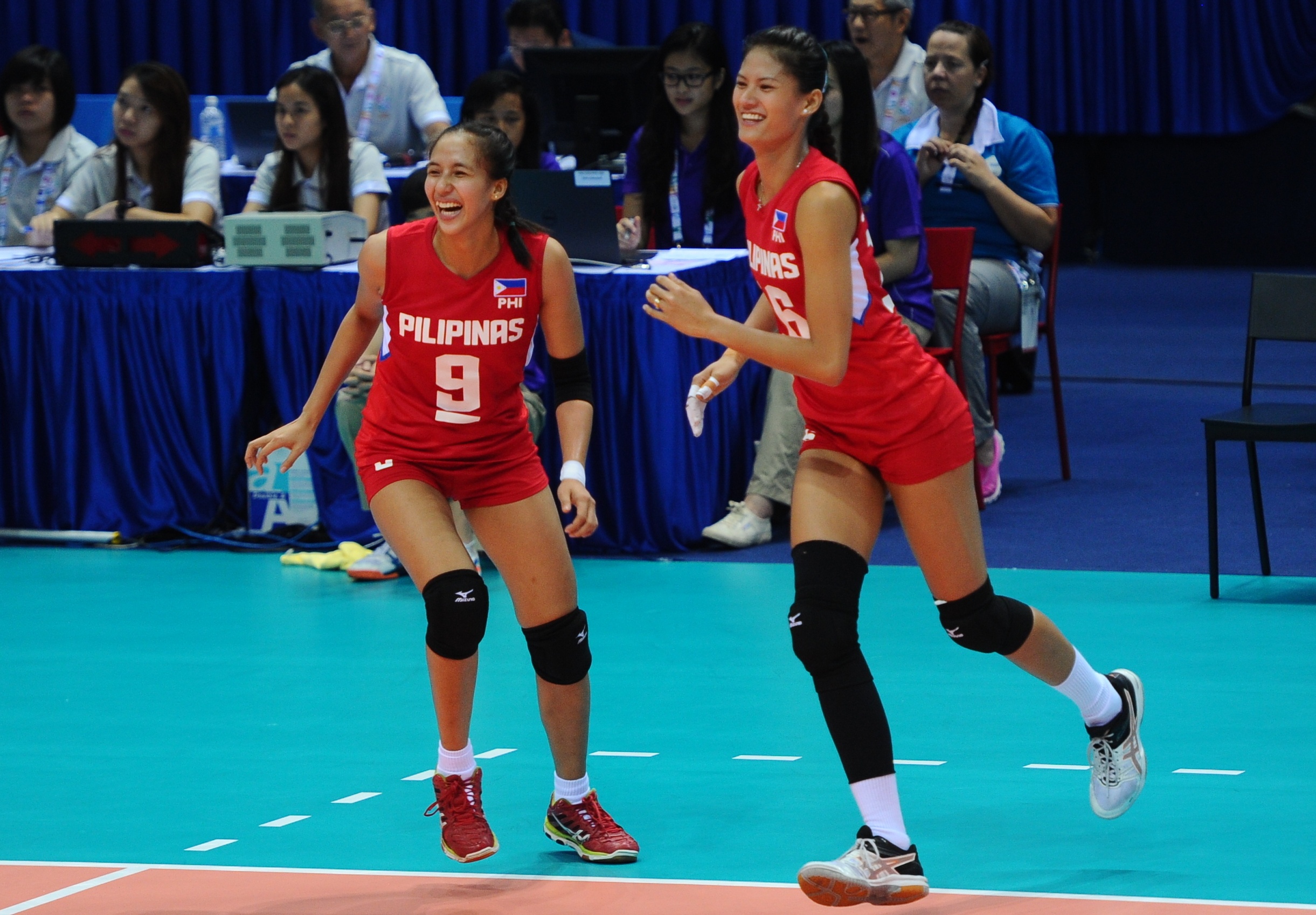| Hai chị em đều thi đấu ở vị trí phụ công, mỗi khi cô em ra khỏi sân, cô chị số 16 (có chiều cao 1,8 m) lại là người lấp khoảng trống quan trọng của Philippines ở giữa lưới. Cả hai đều có những pha chắn bóng tốt mang lại điểm số cho Philippines. |