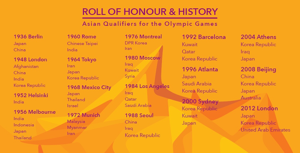 | Danh sách các đội bóng nam châu Á tham dự Olympic từ năm 1936. Ảnh: AFC |