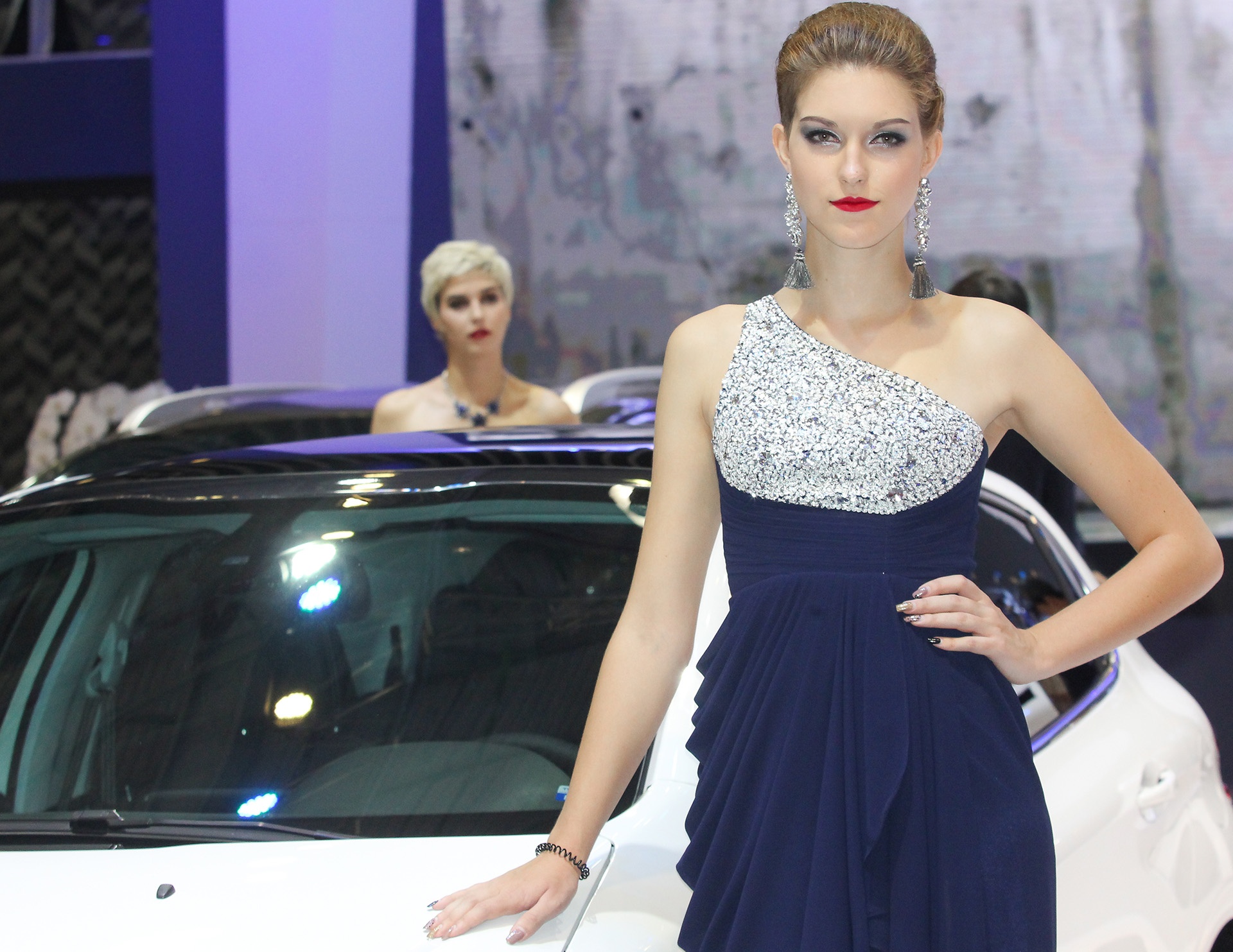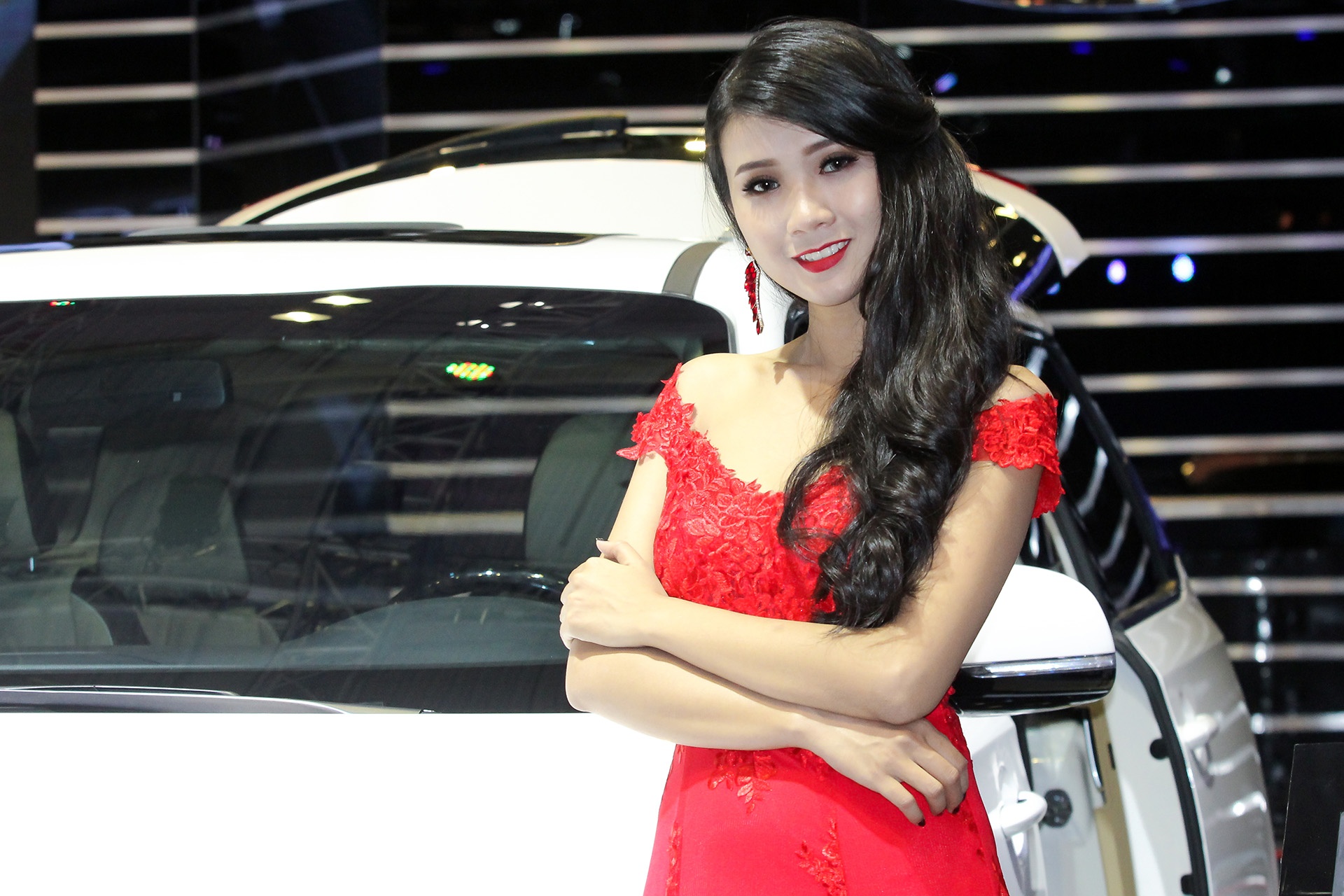 Điểm không thể thiếu trong mỗi kỳ triển lãm xe là sự xuất hiện của những PG xinh đẹp bên cạnh dàn xế hộp.