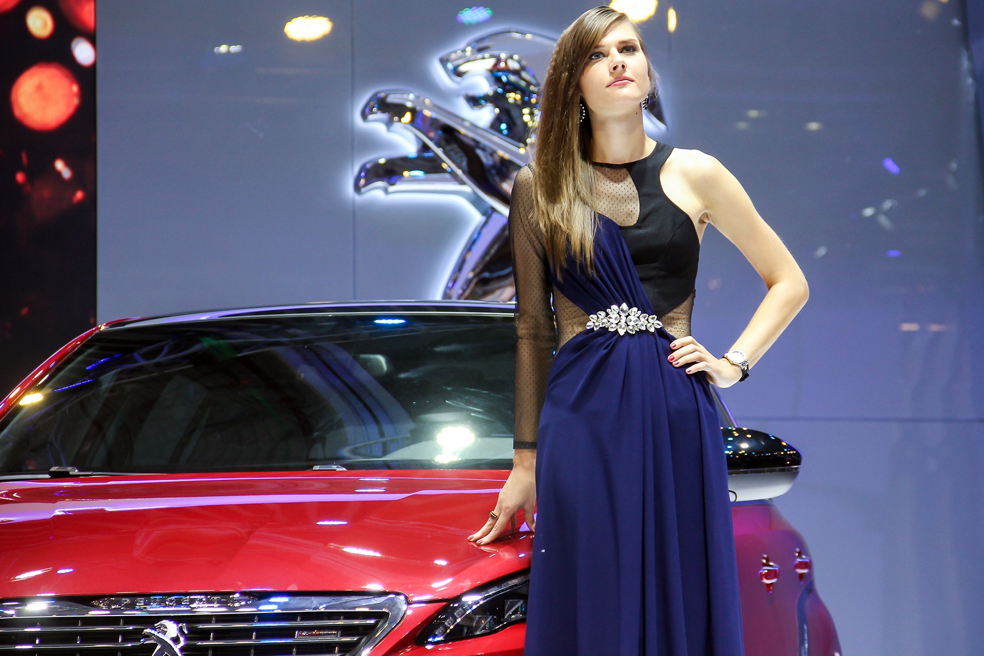 Năm đầu tiên tham dự triển lãm Vietnam Motor Show, Peugeot gây bất ngờ với những người mẫu nước ngoài quý phái.
