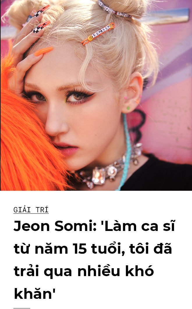Sinh năm 2001, ở tuổi 20, Jeon Somi đã có 5 năm hoạt động trong ngành giải trí. "Bông hồng lai" từng tham dự hai show tuyển chọn thành viên nhóm nhạc nữ từ năm 15 tuổi, góp mặt trong nhóm dự án chỉ được hoạt động trong 8 tháng, từng chuyển công ty quản lý và hiện tại là nghệ sĩ solo.