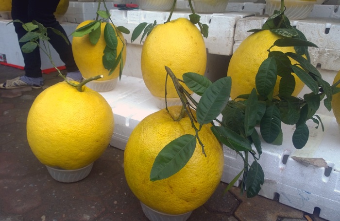 Hiện giá bán mỗi quả bòng là 1,5 triệu đồng loại to đẹp, cuống có lá lộc, còn khách mua nhiều còn 1 triệu đồng một quả.