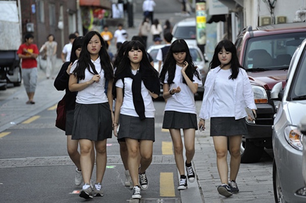 Đứng sau Nhật, Hàn Quốc là quốc gia có tỉ lệ nữ sinh mặc váy nhiều nhất châu Á. Vốn sẵn vóc người cao ráo mảnh mai, nhưng cô gái Hàn thỏa sức "tung hoành" với bộ đồng phục đầy phóng khoáng. Theo một số nữ sinh Hàn, đồng phục mà không ngắn thì mất đẹp.