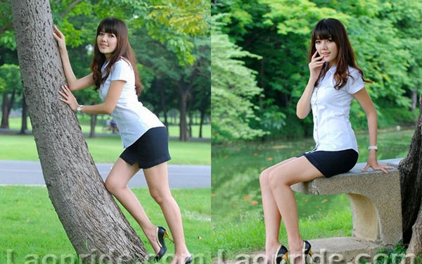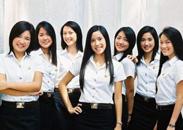 Đồng phục Thái mang phong cách khác hẳn của Nhật và Hàn. Thay vì váy xòe, caro và vest, những nữ sinh Thái lại chuộng phong cách thanh lịch với áo tráng và váy ngắn đen.
